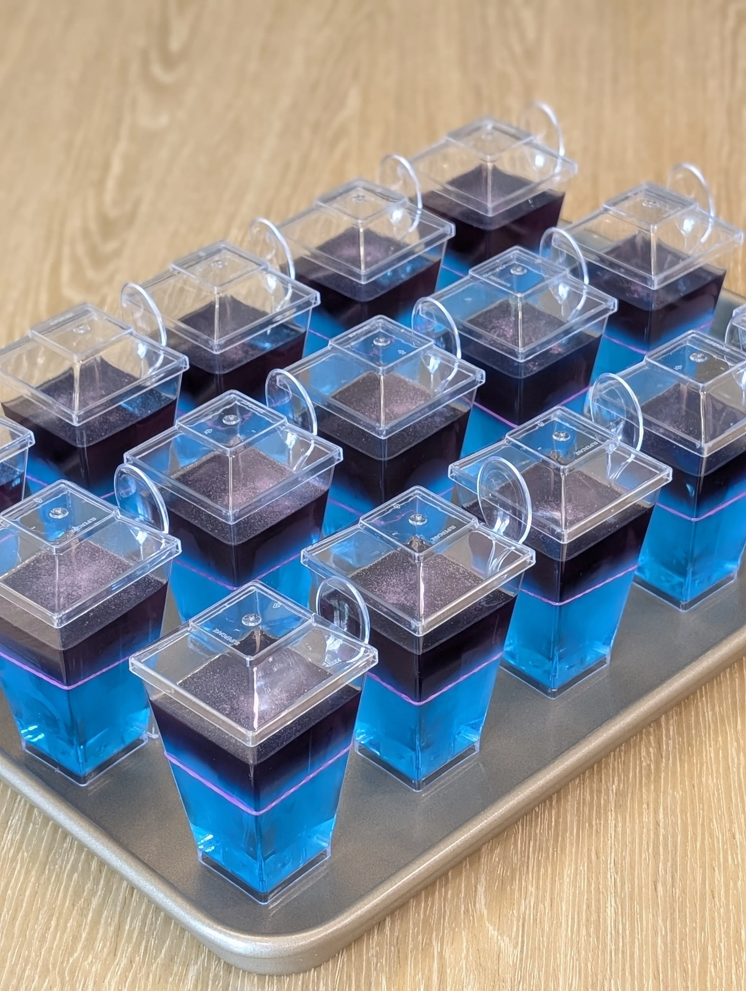 Our boozy, gourmet jello shots are made with premium spirits and high-quality ingredients for a bold, flavorful experience. Each 3 oz adult treat is served in a clear dessert cup with vibrant layers and a polished presentation.